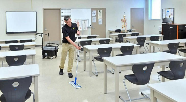 Daily Cleaning: Responsible for the daily cleaning of classrooms, hallways, stairways, restrooms, and other common areas, including sschooleping, mopping, wiping down furniture, and emptying trash.